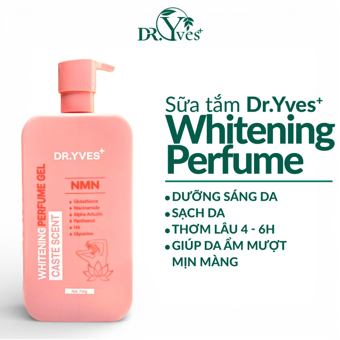 WHITENING PERFUME GEL CASTE SCENT của Dr. Yves là dòng sữa tắm hương nước hoa cao cấp, kết hợp công nghệ làm sạch dịu nhẹ cùng các hoạt chất dưỡng da nổi bật như Glutathione, Niacinamide, Alpha Arbutin, Panthenol, HA và Glycerine. Sản phẩm giúp làn da sạch thoáng, mềm mịn và tươi sáng tự nhiên sau mỗi lần sử dụng.